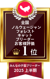 ノルウェージャン本来のおおらかでのびのびした性格を大切に育てています。