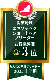 ブリーダー様はとても親切で始終ご丁寧に対応して頂き安心して子猫ちゃんをお迎えする事ができました。