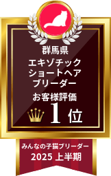 常に目の届く距離で飼育をしており、健康面に関しては毎日細心の注意を払い、深い愛情を持って接しているので…健康的でわりと人なつっこい子猫に育っているかなと思います。