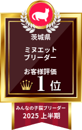 2024年度上半期·下半期 チンチラペルシャ部門2期連続で全国1位🥇ミヌエット茨城県第1位・マンチカン第3🥉位・2025年度上半期チンチラペルシャ3位🥉・ミヌエット茨城県第1位🥇を頂き誠にありがとうございました。