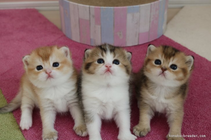 左からブラックゴールデン&ホワイト(ブルーアイ)、ブラックティックドタビー&ホワイト(ノーマルアイ)、ブラックティックドタビー&ホワイト(オッドアイ)です🤗