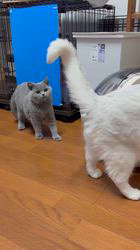 強いキャラの猫が多い我が家です。 控えめなカルーア君が さらに控えめに...