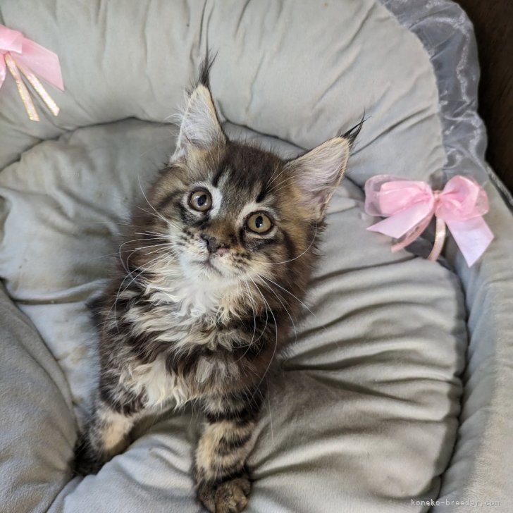 メインクーンのスタンダードなカラーである ブラウンタビー、ブラウンタビー&ホワイトが好きです。