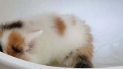 ●子猫は体温調節が苦手です。夏の暑さ、冬の寒さは体調を崩す最も大きな原因になります。一般的に6℃以上の温度差は子猫によくないといわれています。特にお引取り当日は当方の室温と外気温に差が出ることも多く体調を崩す大きな要因になります。お引取りの際は冬場は使い捨てカイロ、夏場はクールマットなどをキャリーケースの中にご用意下さい。お引取り後1週間はサークル内で生活をさせ、子猫がいる部屋だけ適温に保てるよう温度管理とカビ対策の湿度管理をお願いします。