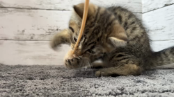 すぐに家になれてくれて、食欲旺盛でトイレもすぐにおぼえ、千住猫のおもちゃで遊び