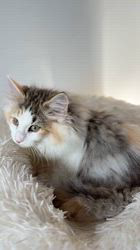 活発な性格の子ですので、元気いっぱいのノルウェージャン女子をお探しの方にピッタリだといます。社交性を重視したブリードを心がけていますので、性格も良く、人間にもとても懐いています。家族の一員として、オーナー様を癒やし続けてくれる存在になってくれるでしょう。