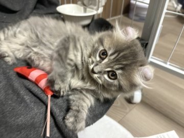 お迎えするまでの間もマメにに連絡してくださり、誠実さと猫ちゃんへの愛を感じました。猫ちゃんが風邪をひいてしまった時もしっかりお世話していただき、とても感謝しています。新山さんからお迎えすることができてよかったと思います。
